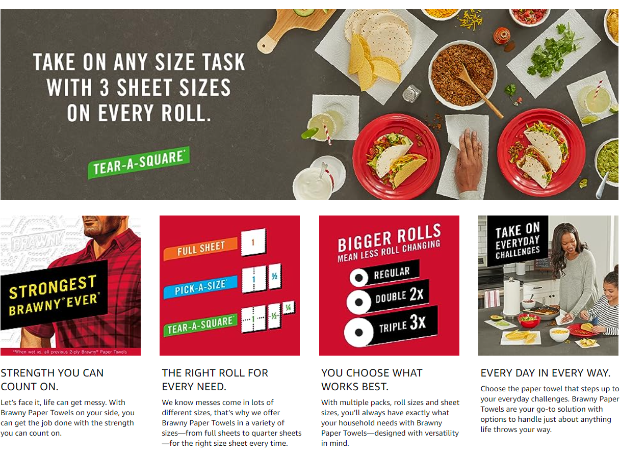 - Our strongest ever Brawny Tear-A-Square Paper Towels offer 3 sheet sizes (Quarter, Half and Full) so you get just what you need to fit the task.