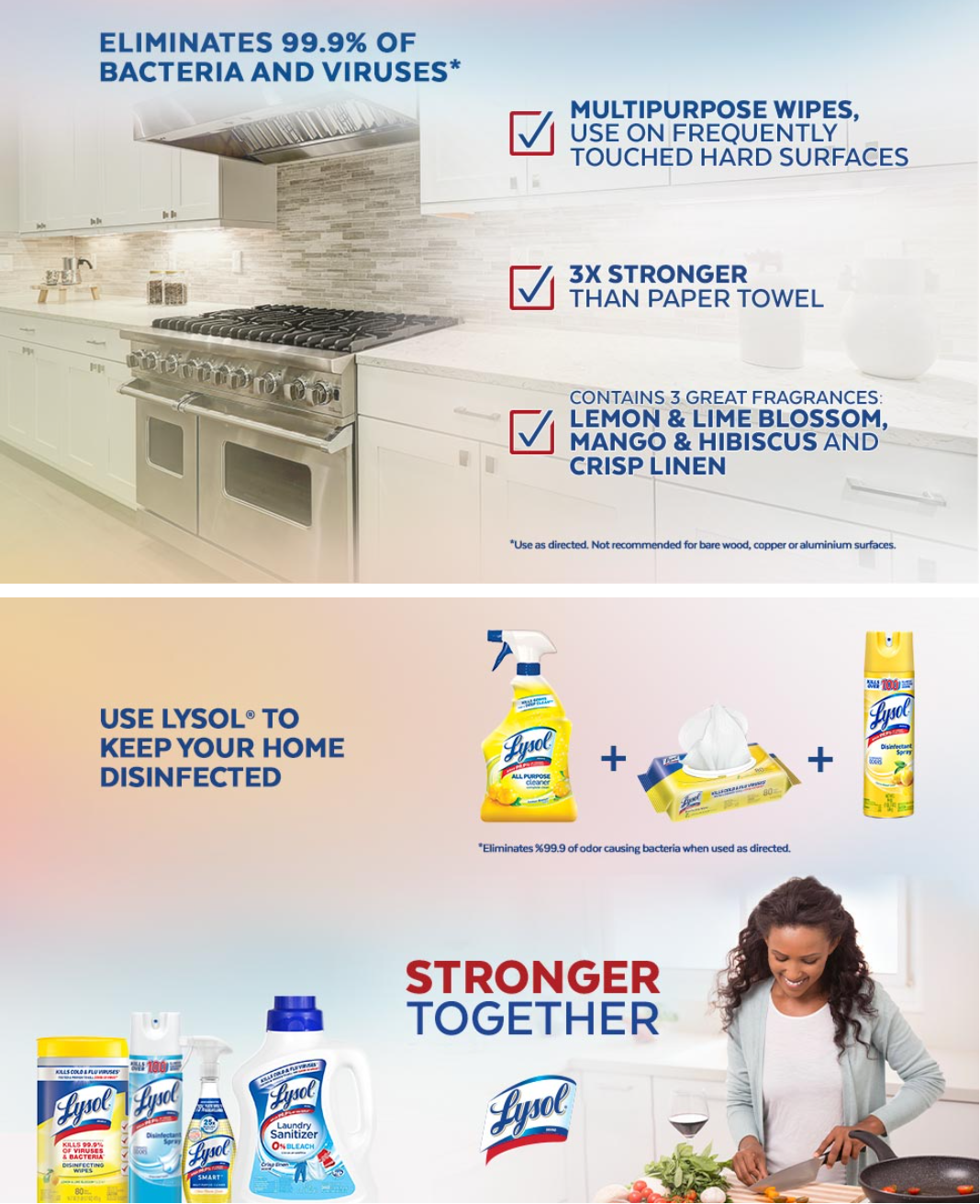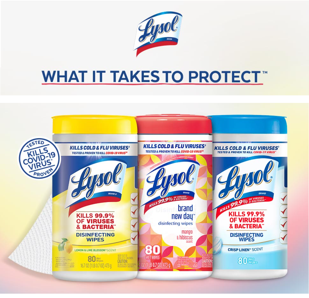 - LYSOL DISINFECTING WIPES ELIMINATE 99.9% OF VIRUSES AND BACTERIA: Tested and proven to disinfect and eliminate 99.9% of viruses and bacteria, including 8 cold and flu viruses. (Use as directed).